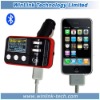 Bluetooth FM Transmitter for iphone/ipod Keywords: FM transmitter + charger +bluetooth car mp3 for iPhone It is 3 in 1 design: Bluetooth + Charger + Car MP3 Transmitter for iPod, iPhone 3G/3GS/4G Item No.: 368iB Spec & description: 1) With bluetooth Car Kit function, Compatible with Bluetooth Mobile phone, usedforiPod/iPhone 3G/3GS/4G, 2) Charge to iPod, iPhone 3G/3GS/4G, 3) Remote control operate iPod and iPhone 3G/3Gs, 4G 4) Caller ID displays; 5) Full Duplex, DSP(Digital Sound Process) Technology for echo cancellation and noise suppression; 6) Auxiliary Input: Transmits mp3 files from USB disk, SD/MMC card and any portable USB/MP3 devices to car FM stereo system; 7) LCD displays the name of songs, frequency, volume and EQ mode; 8) Frequency ranges: 87.5MHZ 108.0MHZ (total is 206 channels); 9) The current song, frequency and volume could be memorized automatically even power off; 10) Power supply: DC10-26V; 11) Music format: MP3; 12) Optional standard 21 keys remote control OR steering wheel remote control; 13) Product Dim.: 84.0(L)*74.0(W)*43.0(H) mm N.W.: 50g/pc Packing Details: 1pc/Blister packing 100pcs/CTN CTN Size: 66X41X51cm N.W.: 7.9kgs G.W.: 9.0kgs Acessories includes: Prodct + User manual + Audio cable + fause (spare part) + Remote control